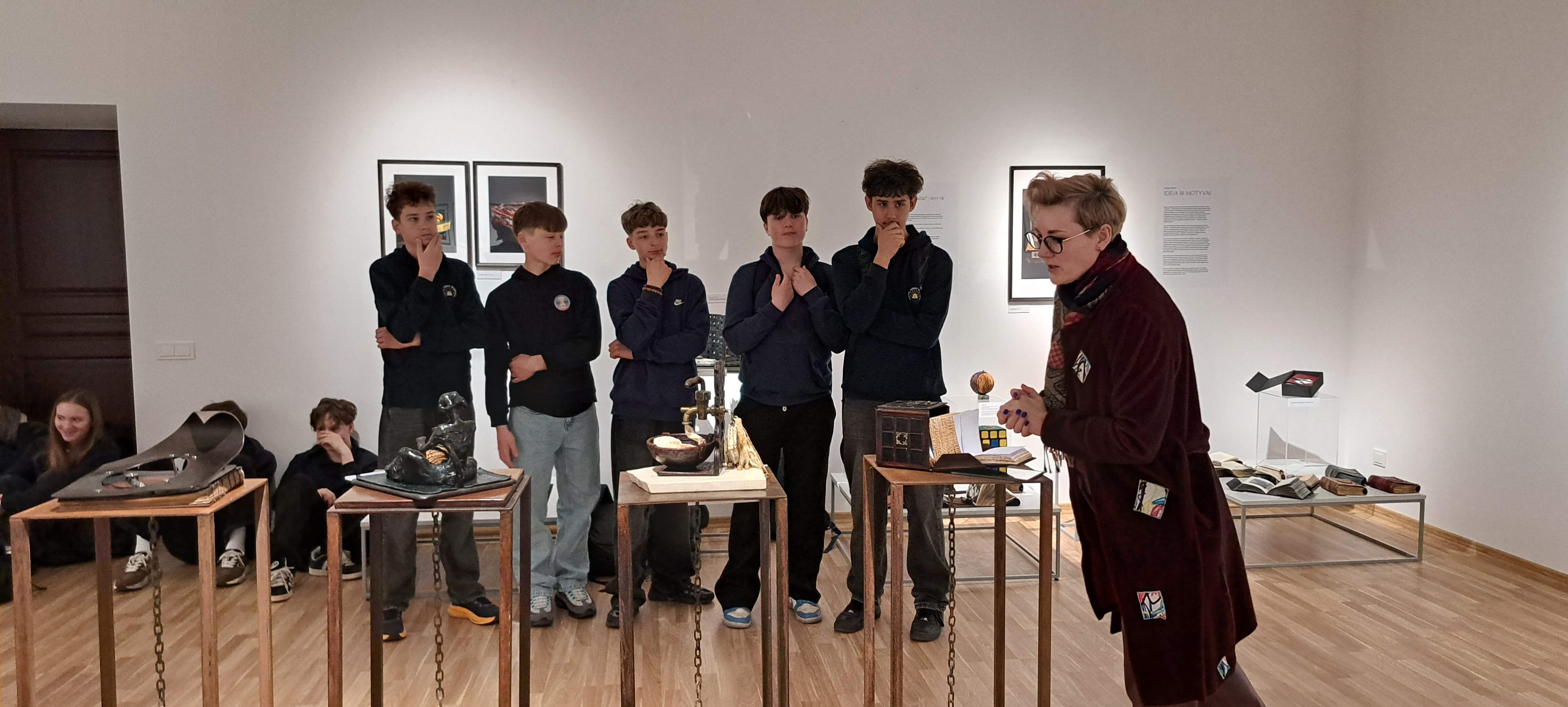 Klausydami parodų kuratorės pasakojimų, mokiniai turėjo galimybę pažinti keturias parodas: