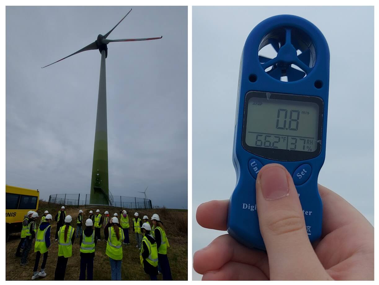 Ketvirtokai matavo vėjo greitį, įvertino jėgainės aukštį, pasiklausė kokie garsai sklinda, kai jėgainė sukasi